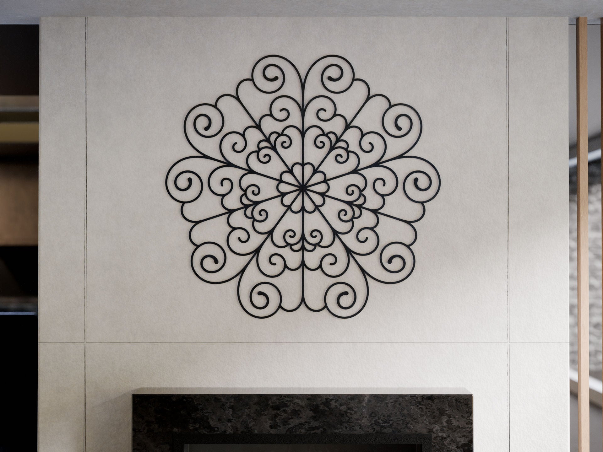 High-quality wall art of an ornate pattern of floral shapes.